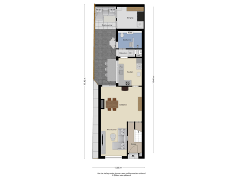 Via zowel de woonkamer als de bijkeuken stap je de gezellige stadstuin in, een heerlijke buitenruimte waar binnen en buiten naadloos in elkaar overlopen. Deze tuin is echt een verlengstuk van de leefruimte: perfect voor lange zomeravonden, diners en relaxte weekendmomenten. Er is genoeg ruimte om een grote eettafel te plaatsen waar je met familie of vrienden kunt genieten van een goed glas wijn of een gezellige barbecue. Onder de overkapping creëer je eenvoudig een knusse loungehoek, ideaal om ook op minder zonnige dagen lekker buiten te zitten. Naast de overkapping vind je de praktische stenen berging, perfect voor het stallen van fietsen, het opbergen van tuingereedschap of seizoensspullen.