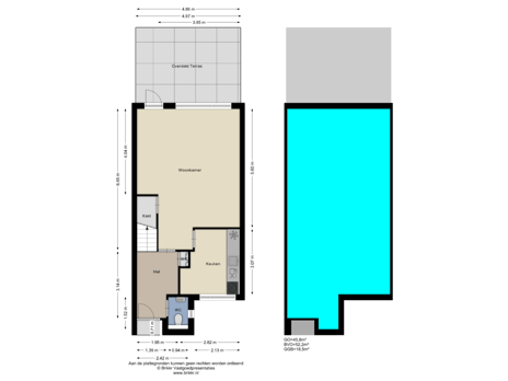 - 80 m² (16,00 meter diep en 5,00 meter breed)