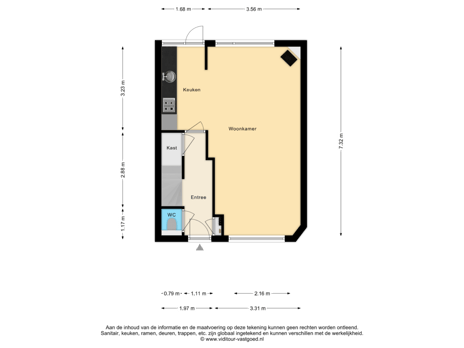 - 33 m² (6,00 meter diep en 5,50 meter breed)