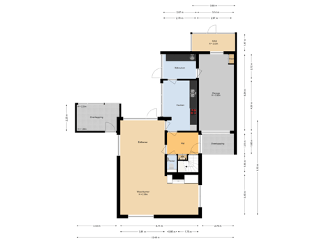 - 151 m² (10,82 meter diep en 13,98 meter breed)