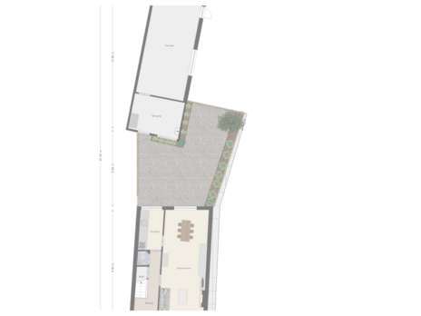 De lichte woon- en eetkamer vormt een heerlijke plek om tot rust te komen. Dankzij de grote ramen aan beide zijden profiteer je de hele dag door van een mooie natuurlijke lichtinval. De ruimte is flexibel in te richten naar jouw wensen, van een knusse zithoek tot een royale eettafel voor gezellige diners met vrienden, de mogelijkheden zijn eindeloos. De keuken is momenteel afgesloten van de woonkamer en biedt direct toegang tot de achtertuin, ideaal om tijdens het koken gemakkelijk naar buiten te stappen. In de praktische opstelling bereid je moeiteloos de lekkerste gerechten. Voor wie meer ruimte en een open gevoel wil creëren, is het mogelijk om de keuken half open te maken. Zo ontstaat er een natuurlijke verbinding tussen wonen en koken. Deze mogelijke aanpassing is ook te zien op de visuals.