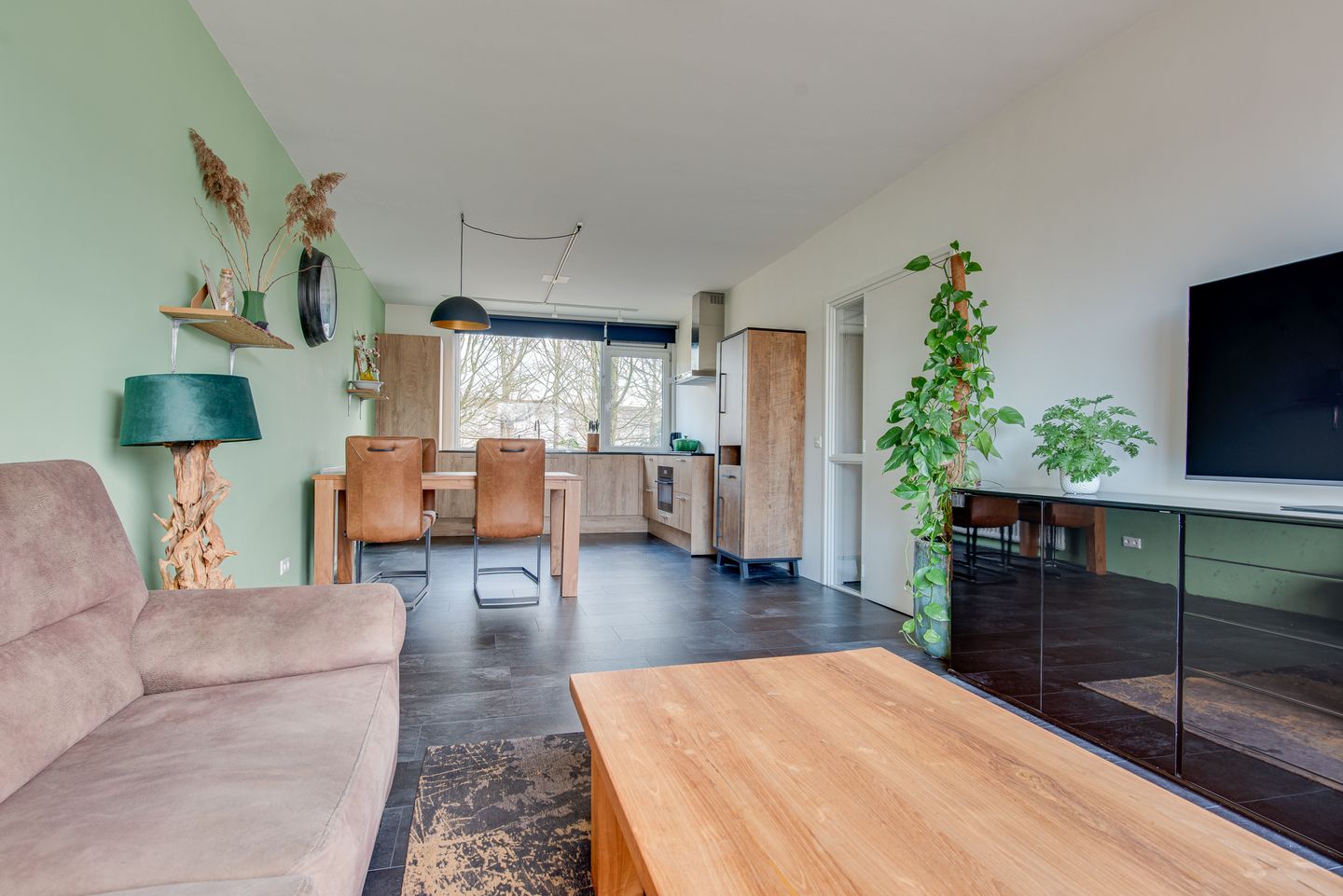 De ruime en lichte doorzon woonkamer met open keuken is voorzien van grote raampartijen aan de voor- en achterzijde die zorgen voor veel lichtinval. Een fijne ruimte! Via een loopdeur is het zonnige balkon aan de voorzijde te betreden. Het balkon is gelegen op het westen, een heerlijk plek om in de namiddag/avond van de zon te genieten.