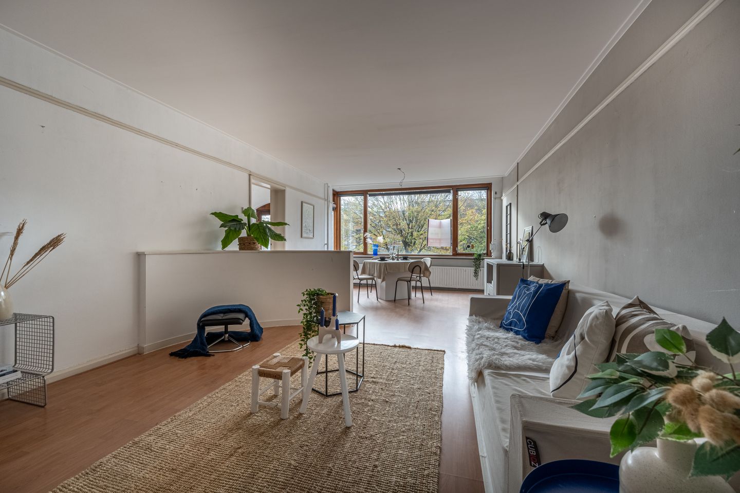 Bij binnenkomst in het appartement kom je in een centrale hal die toegang biedt tot alle vertrekken. Door het hele appartement ligt een nette laminaatvloer, wat zorgt voor een rustige en uniforme uitstraling. De woning heeft een praktische indeling en biedt volop mogelijkheden om verder te moderniseren en naar eigen wens in te richten.