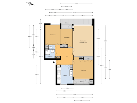 Via het verzorgde portiek en de lift bereik je eenvoudig de derde verdieping. Vanuit de centrale hal zijn alle ruimtes toegankelijk: de woonkamer, keuken, badkamer, het separate toilet en de drie slaapkamers.