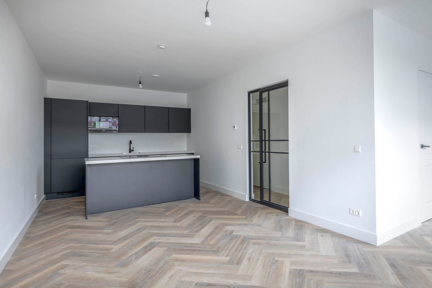 De royale L-vormige woonkamer is een echte blikvanger. Grote raampartijen aan beide zijden zorgen voor een overvloed aan daglicht. De combinatie van een visgraatvloer, stalen deuren en de moderne afwerking creëert een unieke mix van klassiek en eigentijds. Hier is meer dan genoeg ruimte voor een gezellige zithoek én een grote eettafel.
