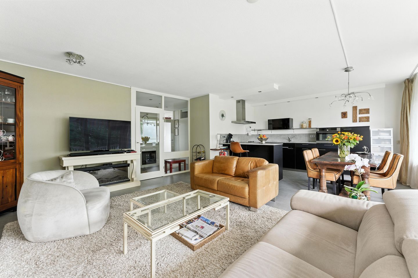 De woonkamer valt op door de grote raampartij en het vele lichtinval. Vanuit hier stap je zo het balkon op, dat over de volledige breedte van de woning loopt en is gelegen op het zuiden, met uitzicht op het groen. De open keuken is modern uitgevoerd in een U-opstelling met bar en voorzien van diverse inbouwapparatuur, waaronder een kookplaat, afzuigkap, combi-oven/magnetron, koelkast en vaatwasser. Er is veel werkruimte en kastruimte aanwezig.