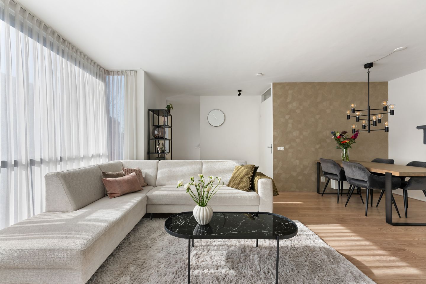 - Ruimte en licht – Royale woonkamer met veel ramen en een open keuken