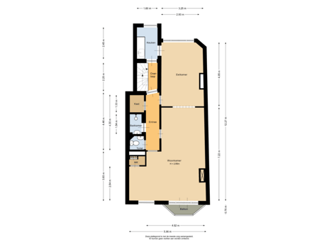 - Plafondhoogte woonkamer: ca. 2,88 meter