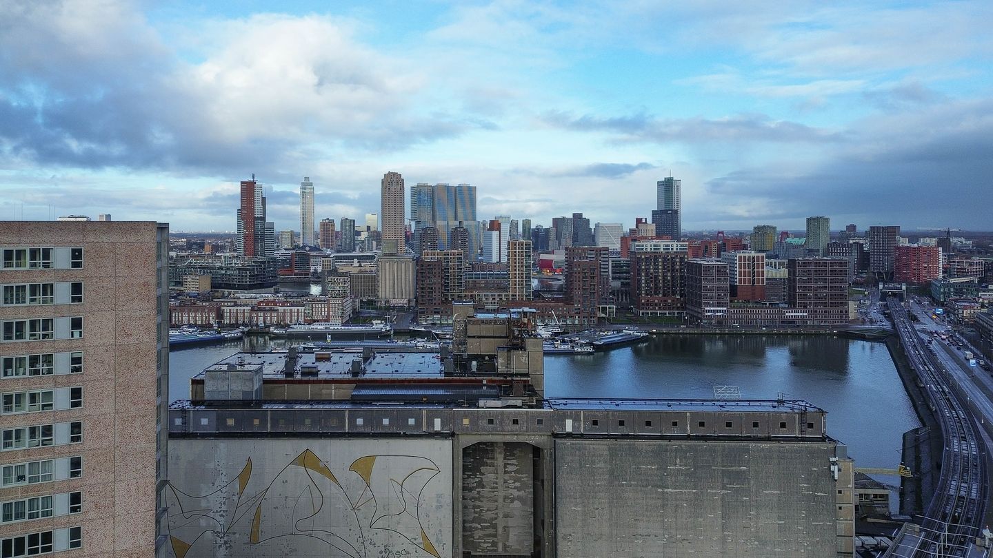 Panoramisch uitzicht over Rotterdam vanaf 22e verdieping.
