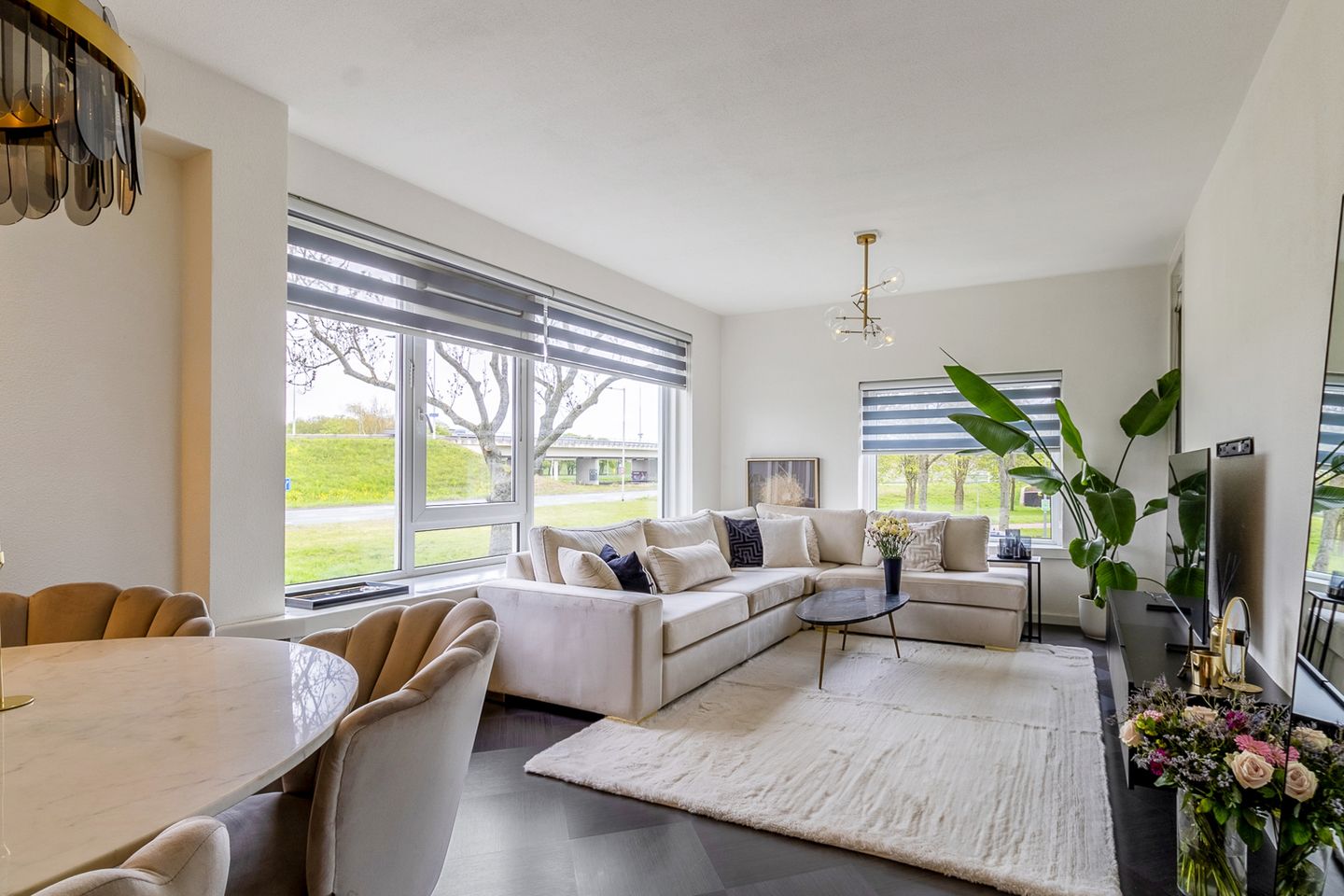 De woonkamer is licht en royaal van formaat. Dankzij de hoekligging zijn er ramen aan twee zijden, wat zorgt voor een prettige, open sfeer. Vanuit de woonkamer stap je via een deur het balkon op, dat is gelegen op het zuidwesten – ideaal om te genieten van de middag- en avondzon.