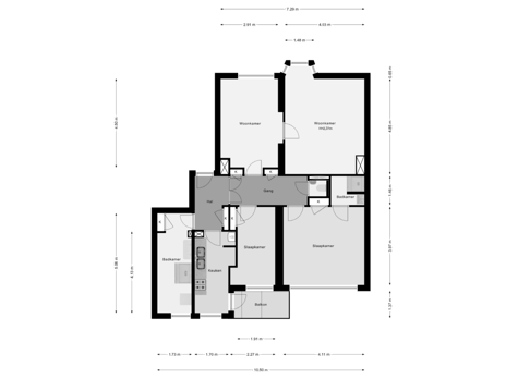 Bij binnenkomst betreedt u de hal, die toegang biedt tot verschillende vertrekken in het appartement. Vanuit de hal bereikt u de gang, die de ruimtes op functionele wijze met elkaar verbindt.