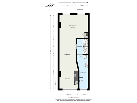 Royale lichte L-vormige doorzonkamer (circa 12.02 x 4.64/2.67 m) voorzien van meterkast.