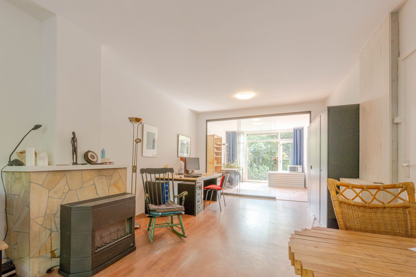 * Woonruimte aan de voorzijde, voorzien van laminaatvloer en gashaard.
