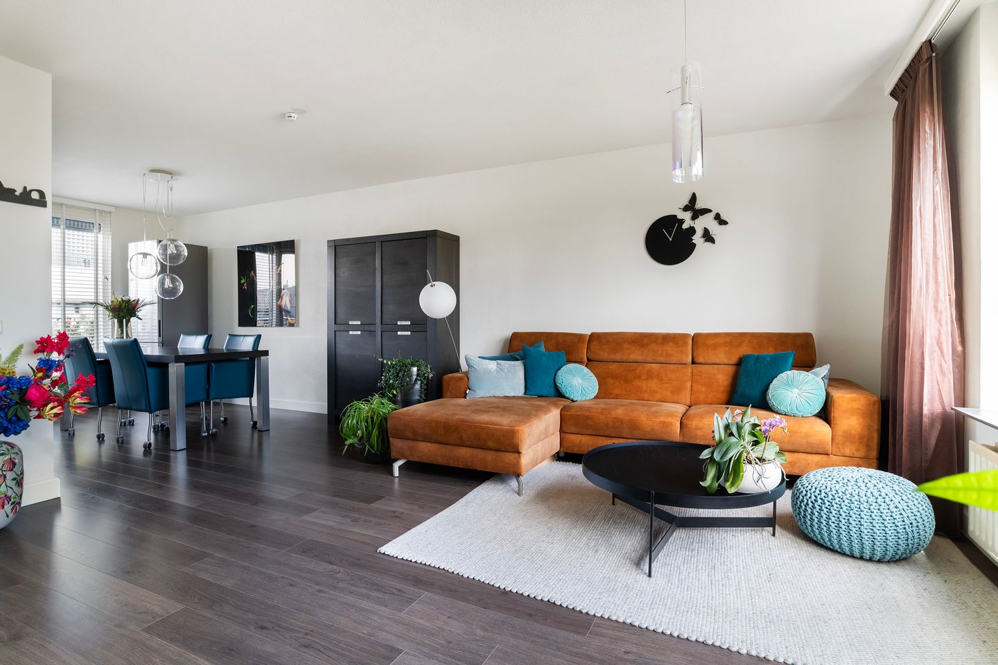 Op de vierde verdieping stap je de lichte en sfeervolle woonkamer binnen. Het daglicht komt je van twee kanten tegemoet, wat zorgt voor een open en frisse sfeer. De moderne open keuken verbindt de zit- en eethoek op een natuurlijke manier. Zo blijf je altijd in contact met je gasten, of je nu staat te koken, uitgebreid tafelt of lekker op de bank neerploft. Zet de deur open en stap het balkon op. Een heerlijke zonnige plek waar je volop kunt genieten. En als extra bonus kijk je in de verte zelfs uit op de top van de Erasmusbrug, de Zalmhaventoren en De Hef.