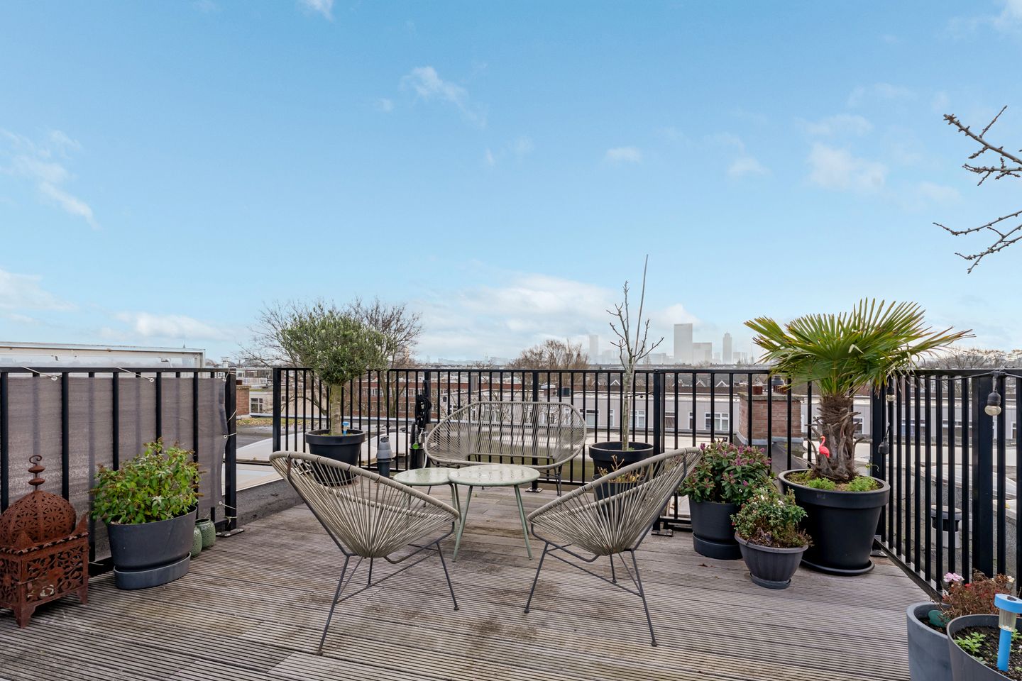 Eigen dakterras met prachtig uitzicht over de skyline van Rotterdam. Een ideale plek om van de zon en rust te genieten.