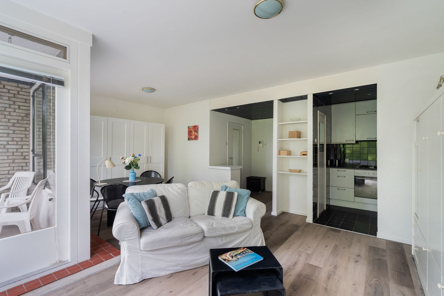 Entree met garderobe en directe toegang tot alle vertrekken. De ruime woon/-eetkamer bevindt zich aan de voorzijde van de woning en wordt gekenmerkt door een prachtige lichtinval dankzij de grote raampartijen. Er is meer dan genoeg ruimte voor zowel een zit- als eethoek, vanwaaruit je toegang hebt tot het balkon op het noordwesten. Hier kun je heerlijk genieten van de ochtend- en middagzon! De verzorgde open keuken beschikt over diverse inbouwapparatuur, waaronder een oven, 4-pits kookplaat en een koel/-vriescombinatie. De badkamer is voorzien van een ligbad, douche, wastafel en toilet. Daarnaast is er een inpandige berging van circa 6 m2, erg handig als extra opbergruimte!
