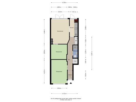 - 32 m² (6,75 meter diep en 4,76 meter breed)