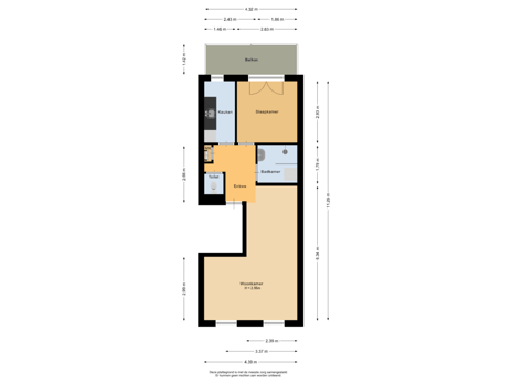 Lichte woonkamer, compacte keuken, nette badkamer.