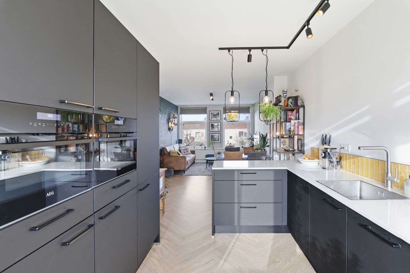 Aansluitend komt u in de keuken. De praktische opstelling biedt ontzettend veel werkruimte en is een echte moderne eye-catcher. De keuken is geplaatst in 2022. Vanuit de keuken loopt u zo het balkon op, waar u heerlijk buiten kunt zitten.