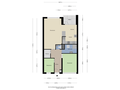 Deze informatie is door ons met de nodige zorgvuldigheid samengesteld. Onzerzijds wordt echter geen enkele aansprakelijkheid aanvaard voor enige onvolledigheid, onjuistheid of anderszins, dan wel de gevolgen daarvan. Alle opgegeven maten en oppervlakten zijn indicatief. Van toepassing zijn de NVM voorwaarden.