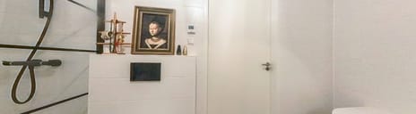 - Dubbele wastafel, inloopdouche, ligbad, toilet, en wastafelmeubel