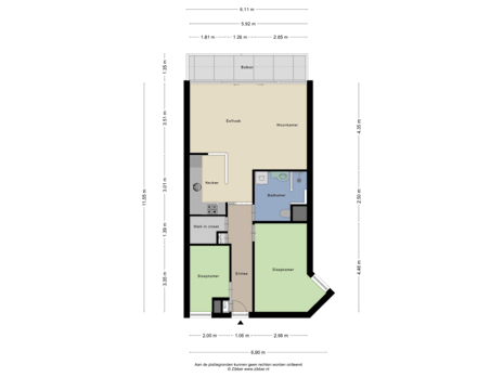 De indeling is praktisch en ruim: een lichte woonkamer met open keuken, twee slaapkamers en een ruime badkamer met toilet. Alles is netjes afgewerkt en direct te betrekken.