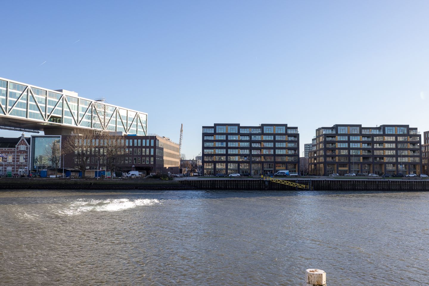 Alles wat Rotterdam zo aantrekkelijk maakt, ligt hier binnen handbereik. Op loopafstand vind je de Entrepothaven met een supermarkt en diverse winkels en restaurants. Voor ontspanning of een rondje hardlopen kun je terecht in het nabijgelegen Nassauhavenpark. De Wilhelminapier, met onder andere Hotel New York en de Foodhallen, bereik je in slechts vijf minuten fietsen. Voor de deur stap je op de watertaxi – hét Rotterdamse vervoersmiddel – of loop je zo naar een bus- of tramhalte. Via de Willemsbrug of Erasmusbrug ben je snel in het bruisende stadscentrum met de Markthal, de Lijnbaan, de Meent en de markt op dinsdag en zaterdag. Ook uitgaan in De Witte de Withstraat of een bezoek aan het Luxor Theater is eenvoudig per fiets of openbaar vervoer.