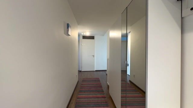 De entree van het appartement geeft toegang tot alle vertrekken. In de hal bevinden zich het toilet, de meterkast en een van de twee badkamers.