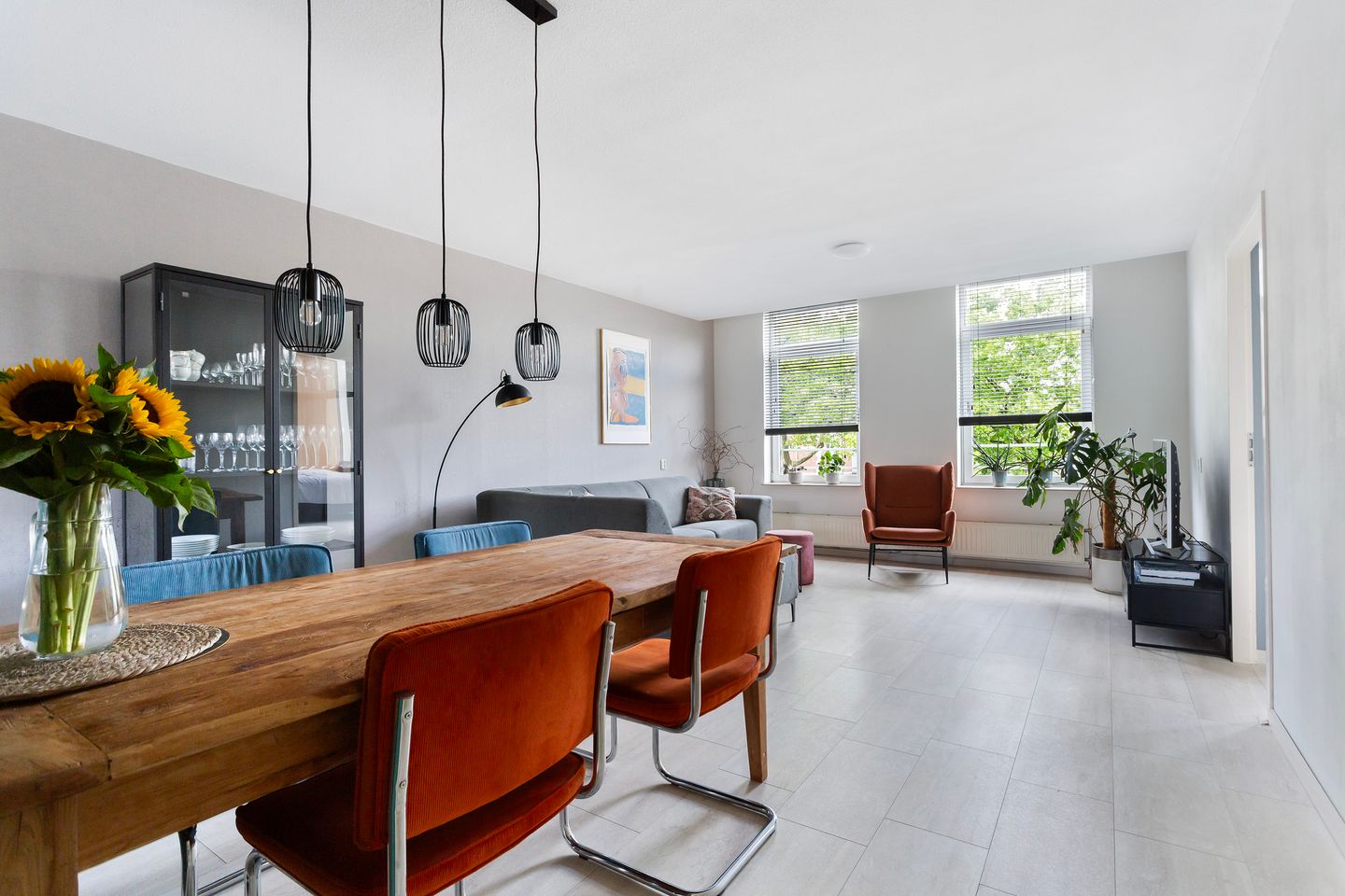 Startend in de woonkamer; die lekker licht is en ruim opgezet. De jaloezieën zorgen voor een fijne sfeer. De halfopen keuken (2022) is voorzien van moderne inbouwapparatuur en is afgewerkt met stoere donkergrijze fronten en een zwart werkblad. Vanuit de keuken loop je zo door naar het balkon, gelegen op het noordoosten: de perfecte plek voor een kop koffie in de ochtendzon of een borrel in de avond.