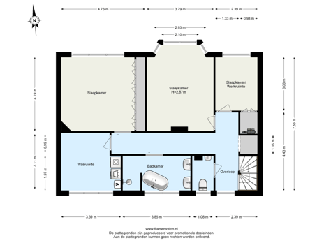 Bij binnenkomst op de verdieping leidt de gang je langs een praktische garderobe en een net afgewerkt toilet met fonteintje. Aan de voorzijde bevindt zich de ruime master bedroom (ca. 4,19 m x 2,93 m), die dankzij de erker en de originele schouw een bijzonder sfeervolle uitstraling heeft. Daarnaast ligt de tweede slaapkamer (ca. 4,19 m x 4,76 m), eveneens voorzien van een karakteristieke schouw en riante kastenwand. Tot slot is er een derde slaapkamer (ca. 3,03 m x 2,39 m) die thans in gebruik is als werkkamer. Aan de achterzijde bevindt zich een praktische waskamer (ca. 3,11 m x 3,39 m) met de cv-installatie en aansluitingen voor de wasmachine en droger, ideaal als extra opbergruimte.