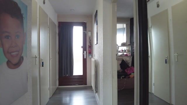 De entree van het appartement komt uit in een hal die toegang geeft tot alle vertrekken. Direct naar de entree bevinden zich de toiletruimte en de meterkast. De lichte woonkamer strekt zich uit over de voorzijde van de woning en geeft toegang tot het balkon. Aangrenzend ligt de halfopen keuken, die in verbinding staat met de woonkamer.