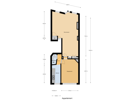 Het appartement is bereikbaar via een gezamenlijke entree met trapopgang naar de derde verdieping. Bij binnenkomst stap je direct de ruime woonkamer, die dankzij de brede raampartijen geniet van veel natuurlijk licht en uitzicht biedt over de levendige Oudedijk.