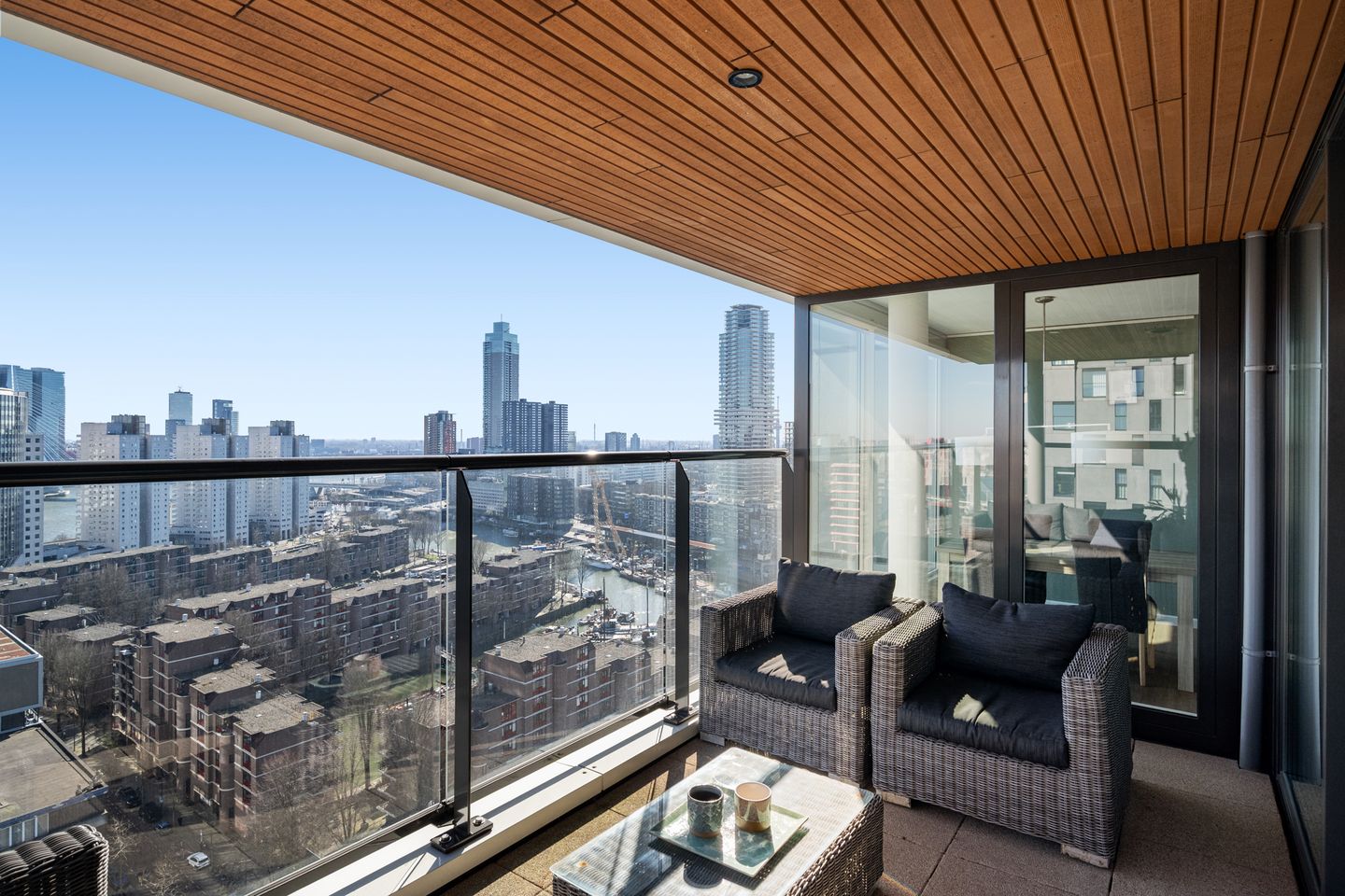 Uniek appartement van ca. 107 vierkante meter te koop gelegen op de 20e verdieping van het prestigieuze complex 100Hoog. Dit 4-kamer appartement in het complex 100Hoog bevindt zich midden in het stadscentrum waar je op elke hoek jouw favoriete hotspot vindt. Op deze unieke plek geniet je van een strakke afwerking en de stadse sferen van Rotterdam. Het ruime terras pal op het zuiden van ca. 13 vierkante meter heeft een fantastisch weids uitzicht op de Maas, de Willemsbrug, Erasmusbrug en Wijnhaven. Dit is een ultieme woondroom!