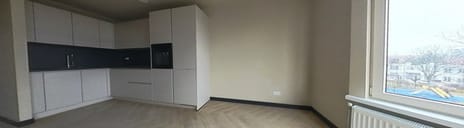 2e etage: De lichte woonkamer vormt het hart van de woning en valt direct op door de erker met grote ramen en de royale breedte. Dankzij de open verbinding met de moderne keuken ontstaat een fijne leefruimte. De keuken is strak vormgegeven, uitgerust met greeploze kasten, een ingebouwde oven, inductiekookplaat en koelkast – ideaal voor de kookliefhebber.