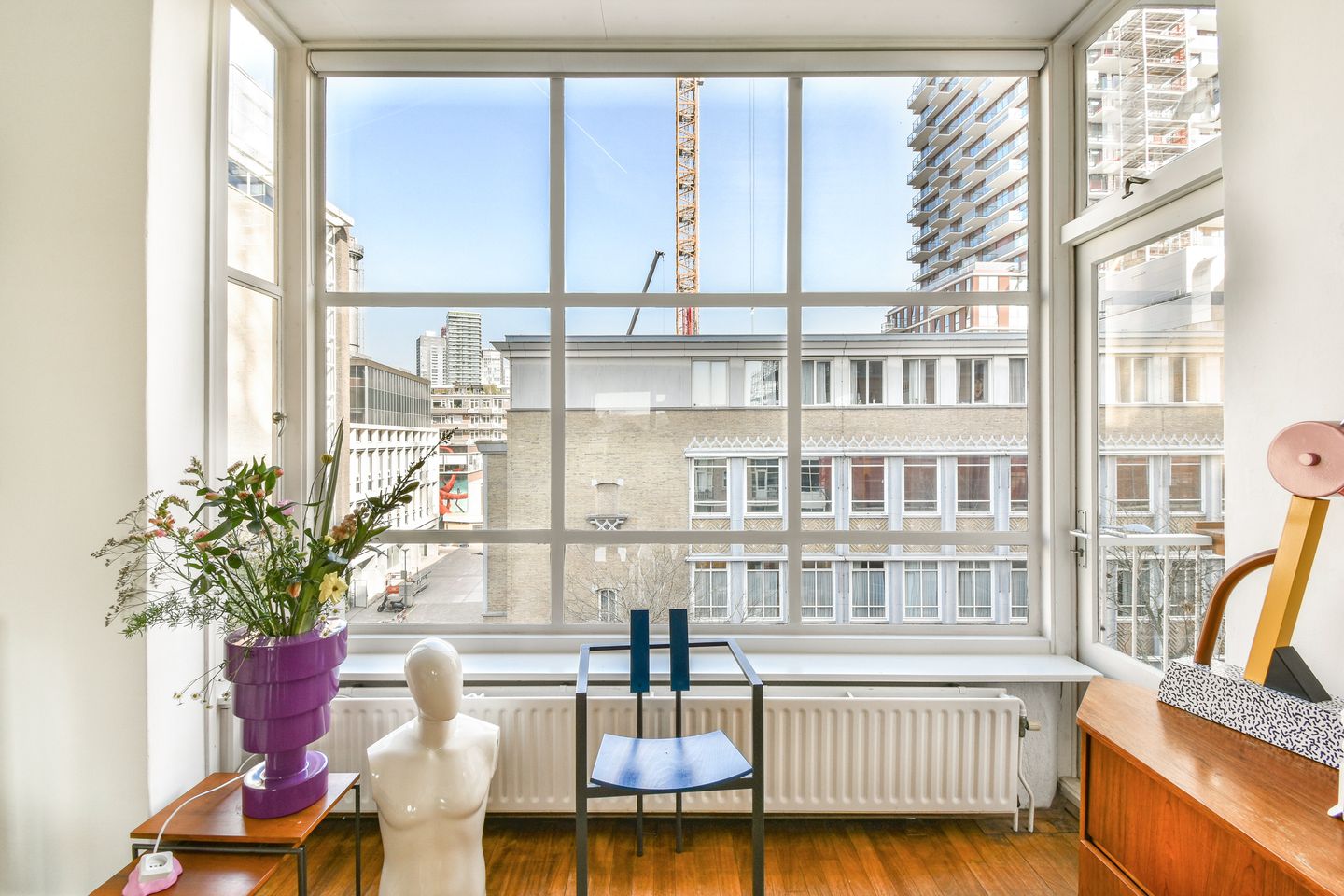 Wauw! Wat dit appartement direct bijzonder maakt, is de imposante erker aan de voorzijde – een iconisch element dat typerend is voor de wederopbouwarchitectuur van de jaren ’50 en het pand een monumentaal karakter geeft. De erker versterkt niet alleen de uitstraling van de gevel, maar laat ook een overvloed aan daglicht binnenstromen in de woonkamer, wat zorgt voor een open en aangename sfeer. De Schiedamse Vest 105 C ligt op de derde verdieping en is tot in de puntjes verzorgd. Denk aan strak afgewerkte wanden, een modern uitgeruste keuken en een sfeervol balkon waar je tot ’s avonds laat geniet van de zon én het uitzicht over de skyline. Met twee slaapkamers, een ruime living en een eigen berging in de onderbouw is dit een ideale plek voor stadsmensen die net dat beetje extra zoeken. Dit is wonen in Cool: stijlvol, centraal en met een flinke dosis karakter. Of je nu een wandeling maakt richting de Witte de Withstraat of neerstrijkt op één van de twee balkons met een goed glas wijn, hier klopt het gewoon!