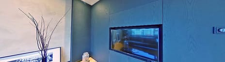 De woonkamer vormt het hart van het appartement: een royale leefruimte met grote raampartijen waardoor er volop daglicht binnenvalt en de ruimte warm en uitnodigend aanvoelt. Er is meer dan genoeg plek voor zowel een comfortabele zithoek als een ruime eettafel. Een stijlvolle maatwerkwand met ruimte voor de televisie versterkt het moderne karakter van de woning. Een uniek en bijzonder detail is de wand in de woonkamer die destijds door een kunstenaar is geschilderd. Deze wand is al jaren onderdeel van de woning en is echt een kunstwerk op zichzelf, dat de ruimte karakter en een exclusieve uitstraling geeft. Vanuit de woonkamer stap je het balkon op, waar je even kunt ontsnappen aan de dynamiek van de stad en toch midden in het centrum blijft.