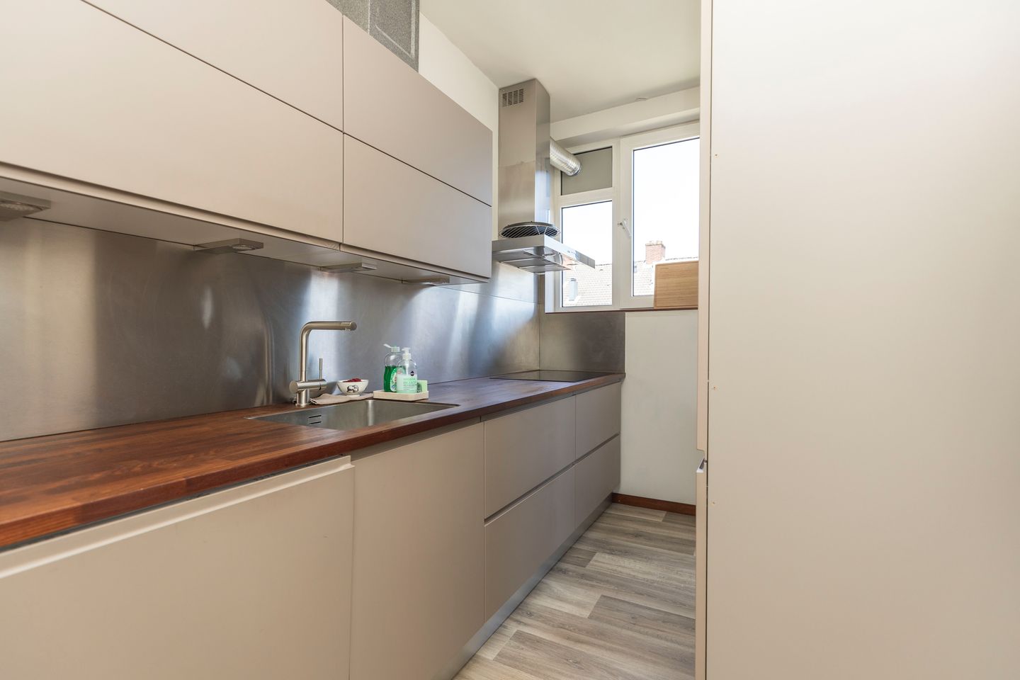 Vanuit de woonkamer en de keuken is er toegang tot het op het noorden gelegen, ruime balkon. Een fijne plek met groen uitzicht over de verzorgde