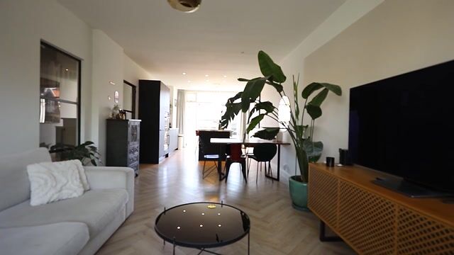 Bij binnenkomst valt direct op dat deze woning met zorg en oog voor detail is bewoond. De hal biedt toegang tot het toilet, twee zijkamers en de royale doorzonwoonkamer.
