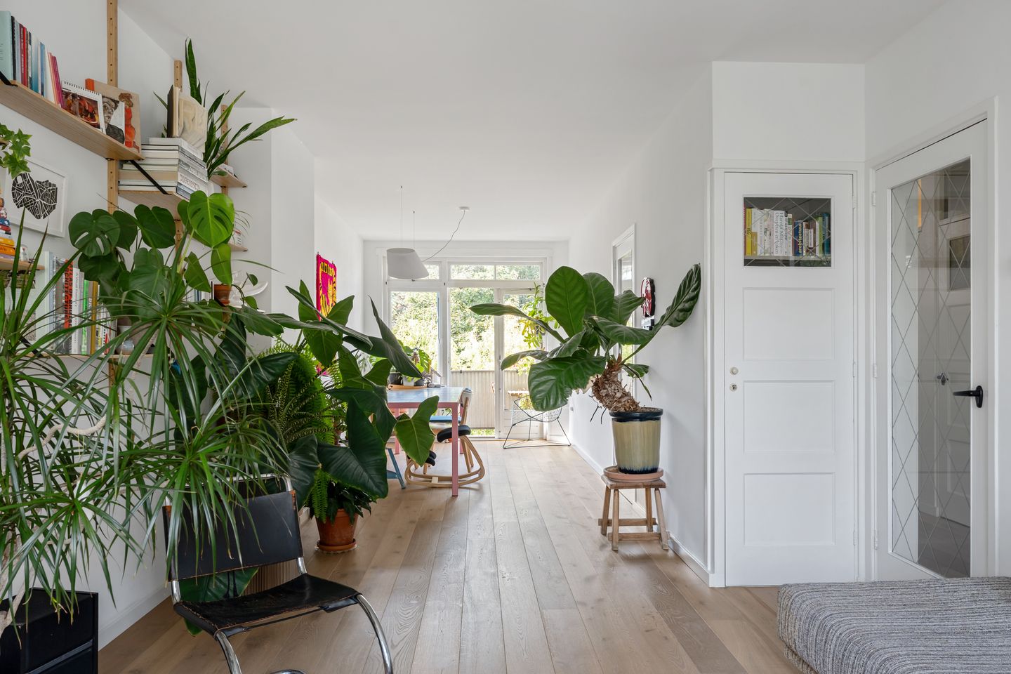 Via het gesloten portiek bereik je de woning op de tweede verdieping. De ruime hal biedt toegang tot de verschillende vertrekken. Hier vind je een modern, ruim toilet en badkamer, de meterkast en een handige bergruimte met wasmachineaansluiting.
