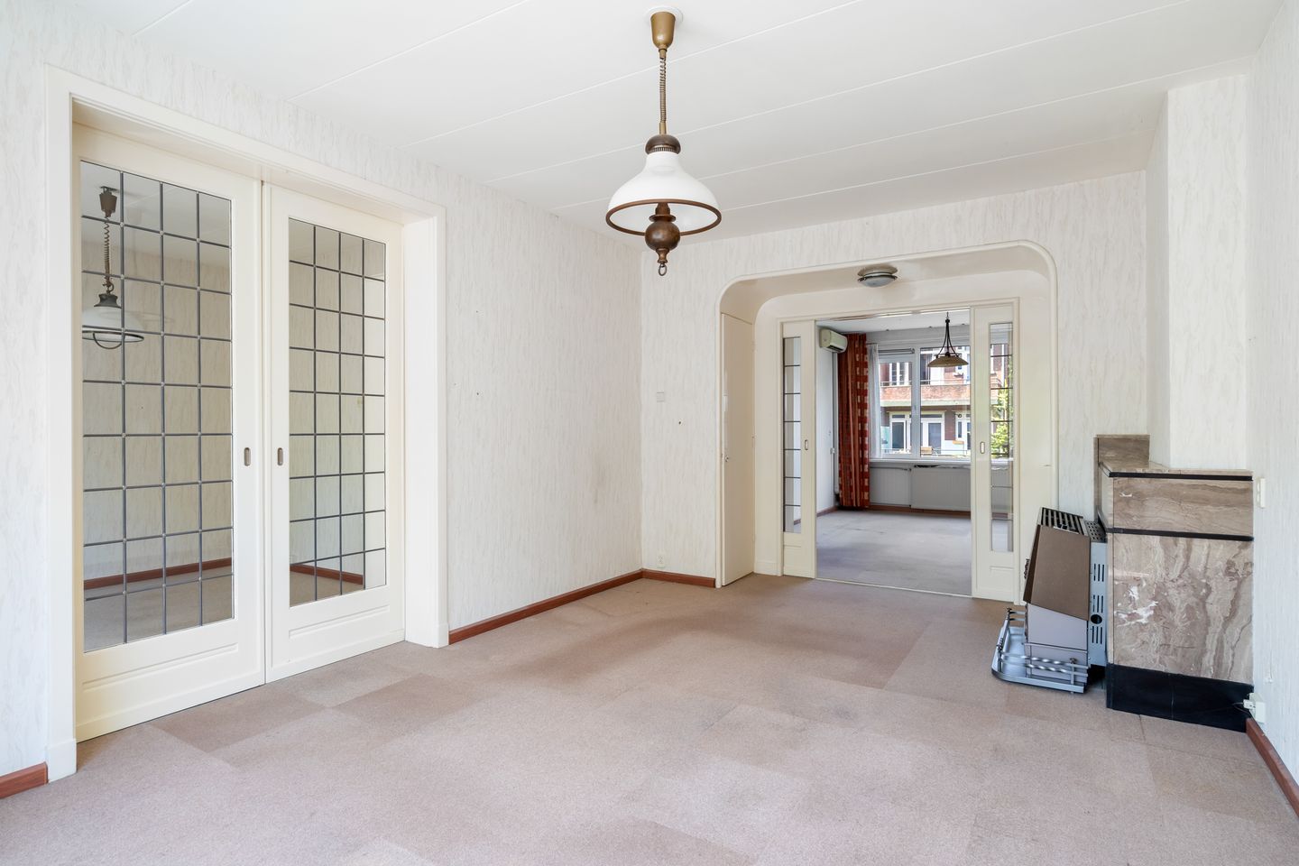 Entree met tochtportaal en toegang tot alle vertrekken. De kamer ensuite met 4 vaste kasten is erg ruim en heeft maar liefst een lengte van ca. 11 meter! Door de grote raampartijen aan beide zijde van de woning treedt er veel natuurlijk licht de woning binnen, wat zorgt voor een fijne en lichte sfeer. Authentieke jaren '30 details zoals de schouw, paneeldeuren en en-suite deuren geven de woning direct charme en karakter. Dankzij de schuifdeuren is de ruimte flexibel in te delen, met een mooie scheiding tussen het woon- en eetgedeelte. Dit is ideaal als je de openheid van de leefruimten wilt behouden, maar toch een visuele scheiding tussen de ruimtes wenst. Het woongedeelte is gelegen aan de voorzijde van de woning en heeft toegang tot de master bedroom. De ruime en lichte master bedroom biedt voldoende plek voor een tweepersoonsbed en een kledingkast. Deze kamer heeft toegang tot het eerste pittoreske Franse balkon, gelegen op het noorden. Hier kan je heerlijk genieten van de ochtendzon als je wakker wordt. De 2e slaapkamer gelegen aan de achterzijde van de woning, is multifunctioneel in te richtten als bijvoorbeeld een werk-, kinder-, slaapkamer. Deze kamer heeft toegang tot het 2e balkon gelegen op het westen. Hier kan je in de einde middag/avond, heerlijk genieten van de zon! In de keuken bevindt zich ook de CV-opstelling en wasmachineaansluiting. Via de keuken is er ook toegang tot het balkon op het westen.
