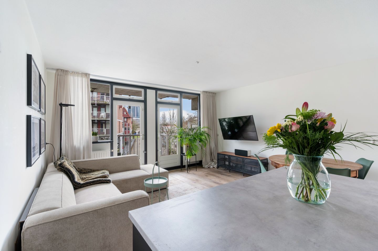 Entree in hal met toilet en meterkast. De leefruimte is een open ruimte met veel lichtinval. Door de ligging aan de buitenkant van het complex heb je een schitterend vrij uitzicht over de Hofbogen. Wist jij dat de Hofbogen binnenkort worden omgetoverd tot het langste dakpark van Nederland? Het balkon is bereikbaar via het balkon en gelegen op het zuidwesten. Hierdoor geniet je vanaf de middag tot de avond, van de heerlijke zomeravonden. De keuken is in 2022 vernieuwd en gerealiseerd in eilandopstelling. De keuken is voorzien van alle gemakken zoals koelkast met vriesvak, oven, kookplaat met afzuigkap, spoelbak en vaatwasser.