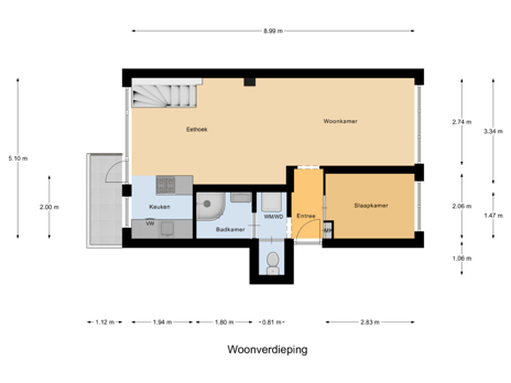 Zie woningplattegrond. Bijgevoegde tekening dient uitsluitend ter indicatie. Er kunnen geen rechten aan worden ontleend.