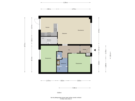 - 93 m² (10,60 meter diep en 8,78 meter breed)