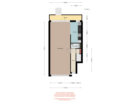 - 45 m² (7,59 meter diep en 5,88 meter breed)