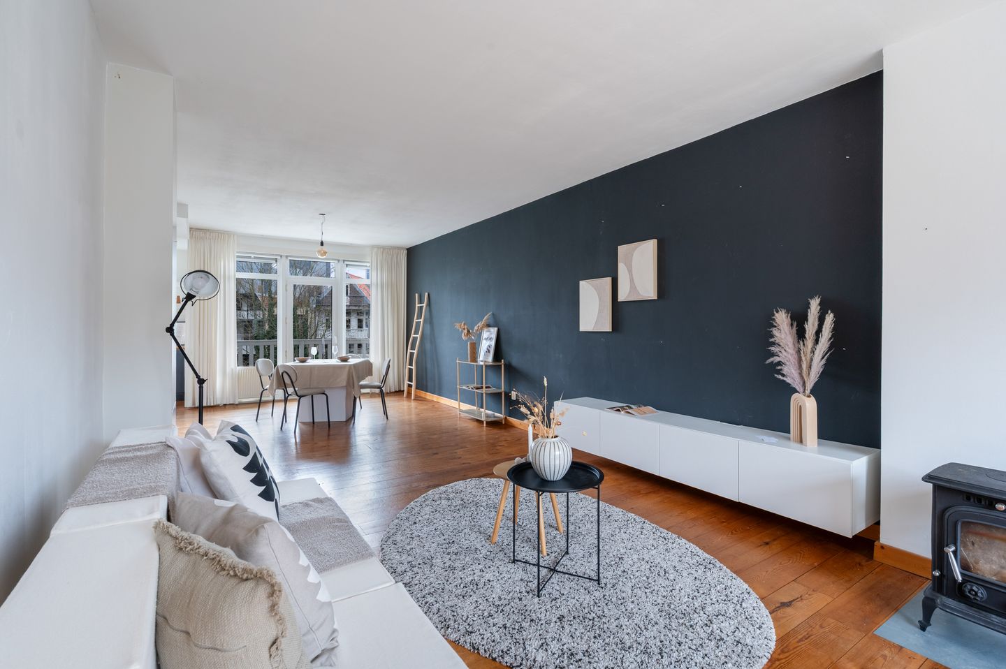 De royale woonkamer strekt zich uit over de volledige diepte van de woning en kenmerkt zich door de prettige lichtinval en het open karakter. De ruimte biedt volop mogelijkheden voor het creëren van een comfortabele zit- en eetkamer.