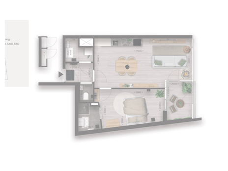 Dit tweekamerappartement ligt aan de achterzijde van The West Blake. Het appartement is voorzien van een City Garden - een intern balkon te bereiken vanuit de living - van circa 6 m2. Op deze plek kun je het grootste deel van het jaar heerlijk overdekt van de zon genieten. Het appartement is luxe afgewerkt en beschikbaar in alle afwerkingsniveaus: Downtown, Midtown en Uptown. Aan de slaapkamer, met een speelse vorm door de schuine wand, is een complete luxe badkamer en-suite voorzien van onder andere een inloop-regendouche, glazen douchewand en wastafelmeubel. Ook is er een berging met aansluiting voor wasapparatuur.