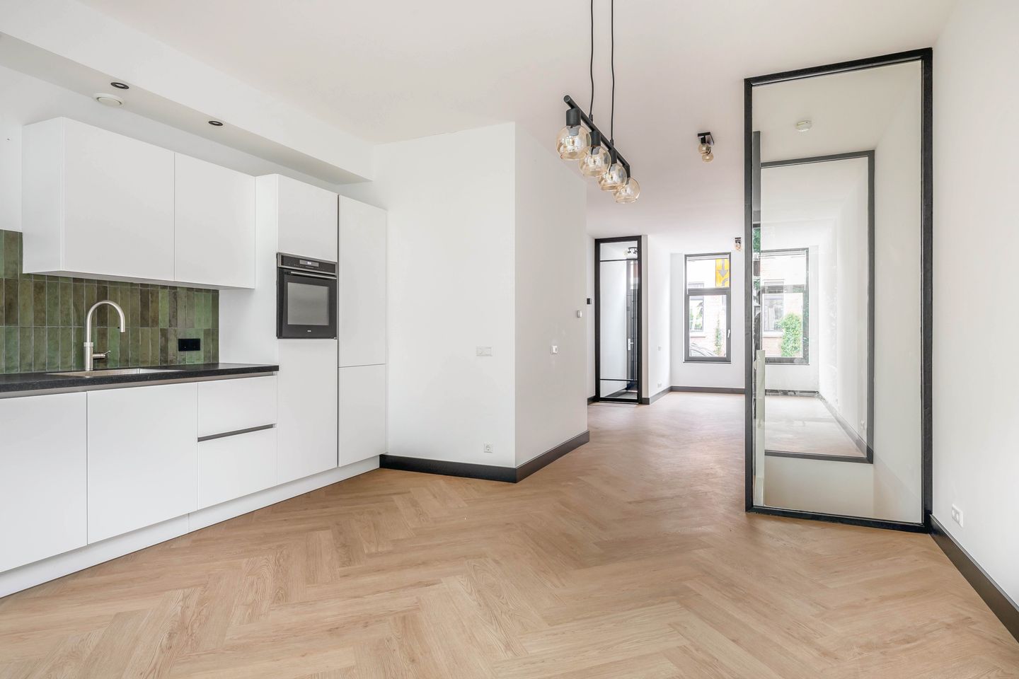 Achter de charmante gevel uit 1907 schuilt een verrassend modern benedenhuis waar karakter en hedendaags comfort perfect samenkomen. Bij binnenkomst valt de stijlvolle afwerking meteen op: een warme visgraat vloer gecombineerd met zwarte deuren met glas, zorgt voor een moderne uitstraling en veel lichtinval. De open keuken is een droom voor kookliefhebbers, uitgerust met hoogwaardige inbouwapparatuur zoals een combi-oven, vaatwasser, koel-vriescombinatie en een inductiekookplaat. De ruime woonkamer is licht en biedt prachtig uitzicht op de tuin die dankzij de westelijke ligging ideaal is om te genieten van de zon vanaf de middag tot in de avond. Dit huis combineert sfeer en luxe op een van de mooiste plekken in Kralingen.