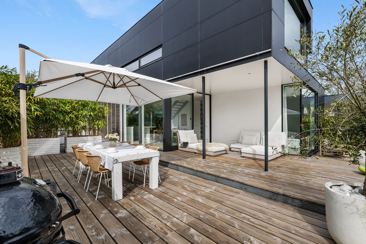 Maar ook binnen is het een heerlijk warm en ruim huis. Dit komt mede door de plafondhoge ramen, schuifpuien en al het licht dat daardoor in alle jaargetijden naar binnen valt.