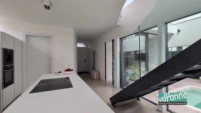 Wanneer je vanuit de hal richting de woonkamer loopt kom je eerst langs de luxe (open) Bulthaup keuken met kookeiland. De keuken is compleet uitgevoerd met een composiet werkblad, combioven/stoomoven, koffiemachine, grote koelkast, Bora kookplaat met geïntegreerde afzuigkap, quooker en vaatwasser. Aansluitend bevindt zich de bijkeuken met vriezer, wasmachineaansluiting en toegang tot de zijtuin. In de keuken is tevens de open trap naar de verdieping gesitueerd.