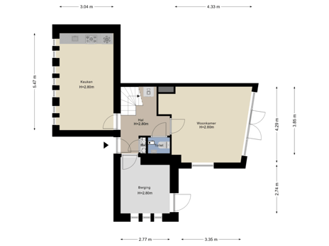Bij binnenkomst kom je binnen in de hal met onder de trap de opstelplaats voor de wasmachine en droger. Aan de rechterzijde bevindt zich de berging op de begane grond van de toren. Er bevindt zich hier nog een extra deur aan de buitenzijde om direct de tuin in te kunnen lopen. Vanuit de hal tref je achter linker deur de (woon)keuken aan met prachtig lichtinval dankzij de authentieke details zoals de raampartijen welke in de oude kerkmuur gesitueerd zijn. Via de andere deur in de gang kom je in de woonkamer terecht. Middels de bijzondere halfronde raampartijen en openslaande deuren is het hofje aan de voorzijde van de woning te bereiken.